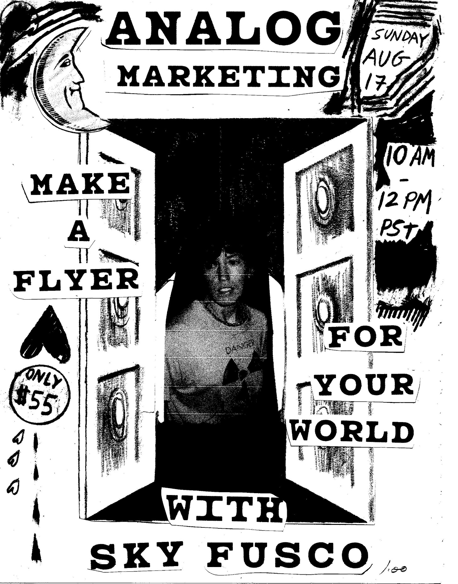 PS: I am teaching a two-hour online workshop this Sunday, August 17th from 10 AM-12 PM PST. The class is called ANALOG MARKETING: Make a flyer for your world with Sky Fusco! $55. Spots are limited. JOIN & LEARN MORE HERE.
